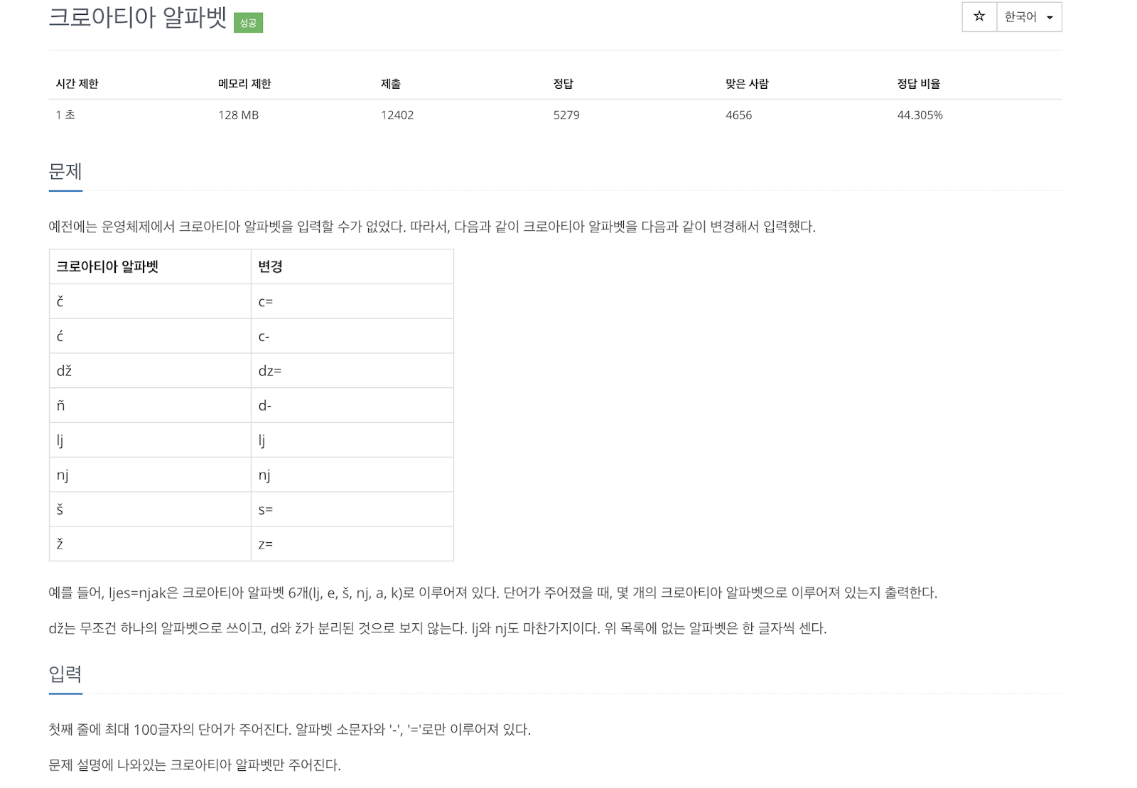 * 1. 크로아티아 알파벳 짜르고 붙이면 붙인 문자열이 또 다른 크로아티아 알파벳이 될 수 있음 ex) nljj
